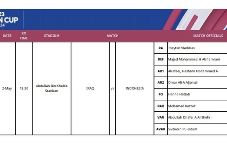 KONTEKS.CO.ID - Majed Al-Shamrani ditunjuk AFC sebagai wasit pertandingan Irak vs Indonesia U-23 dalam perebutan peringkat ketiga Piala Asia U-23 2024.