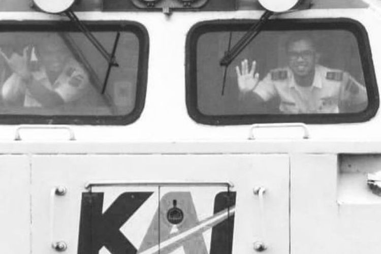 Dalam foto yang terunggah, tampak Julian tersenyum dalam lokomotif KA Turangga yang kemudian mengalami kecelakaan maut.