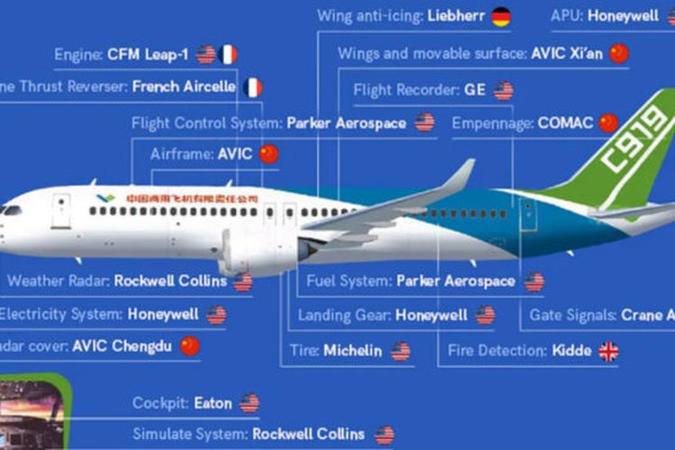 Saat ini C919 sangat bergantung pada komponen barat, termasuk mesin dan sistem kontrol penerbangan. Pemasok utamanya adalah General Electric, Safran dan Honeywell International. ***