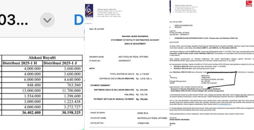 Ia membongkar dokumen yang menunjukkan royalti atas nama Mutholah Rizal, bukan Ari Lasso.