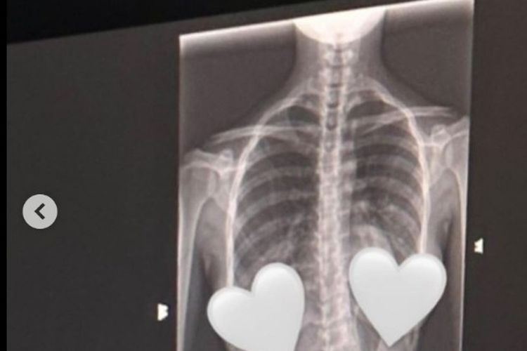 Mantan kekasih Thariq Halilintar ini juga menunjukkan potret rontgen. Terlihat tulang Fuji bengkok ke kiri.