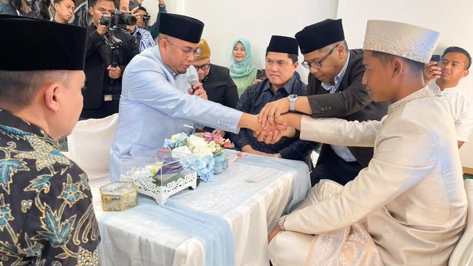 Ketua Umum PSSI Erick Thohir hadir dalam acara tersebut sebagai saksi dalam prosesi akad nikah bersama ayah mertua Arhan, yakni Andre Rosiade.
