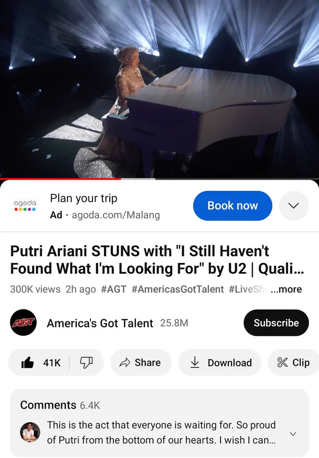 KONTEKS.CO.ID - Lagi-lagi bikin bangga, Putri Ariani mendapatkan standing ovation dari juri dan penonton saat tampil di babak semifinal America's Got Talent (AGT) 2023. Suara Putri Ariani dipuji Heidi Klum, bagai suara malaikat.
