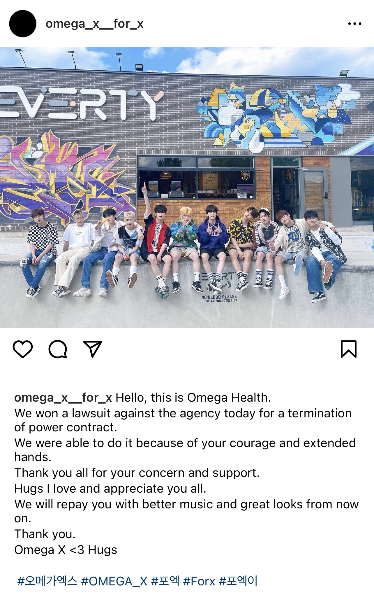 "Halo, ini OMEGA X. Hari ini, kami memenangkan gugatan yang kami ajukan terhadap agensi kami untuk menangguhkan validitas kontrak eksklusif kami," tulis OMEGA X seperti dilansir dari Instagram pada Kamis, 12 Januari 2023.