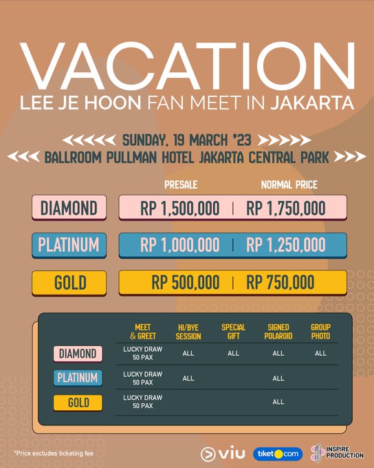 “[OFFICIAL ANNOUNCEMENT] Are you ready to meet our handsome taxi driver, Kim Do Ki? Viu x Inspire IDN presents 'VACATION' LEE JE HOON FAN MEET IN JAKARTA, 19 March 2023. Stay tune for more info, Viu'ers!,” bunyi pernyataan VIU Indonesia.