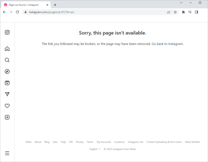 Pada Selasa, 28 Februari 2023, akun Instagram Jungkook BTS dengan username @jungkook.97 tidak bisa ditemukan.