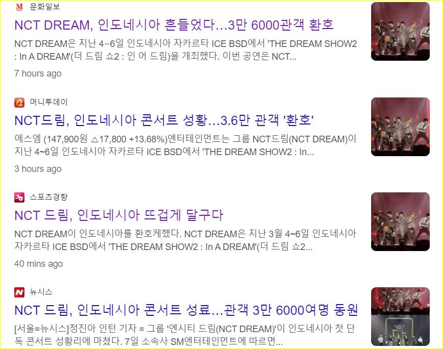 Pemberitaan terkait konser NCT Dream di Indonesia. (Sumber: Naver)