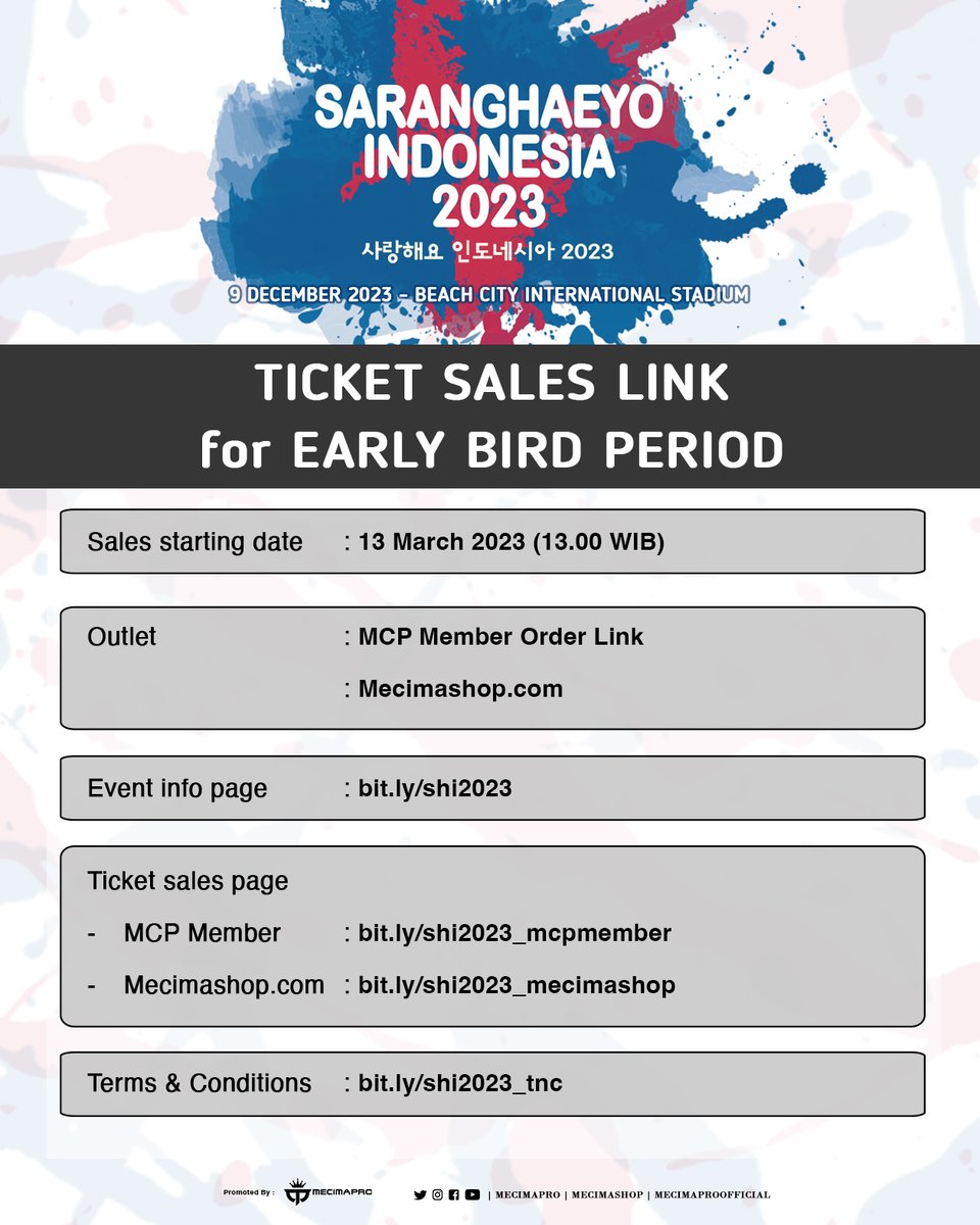 Segera dijual, tiket early bird bisa didapatkan mulai tanggal 13 Maret 2023 di Mecimashop dan MCP Member.