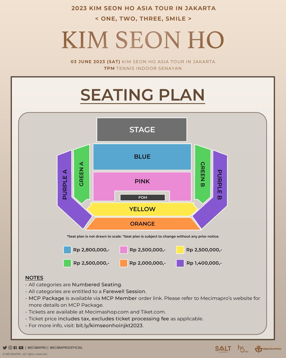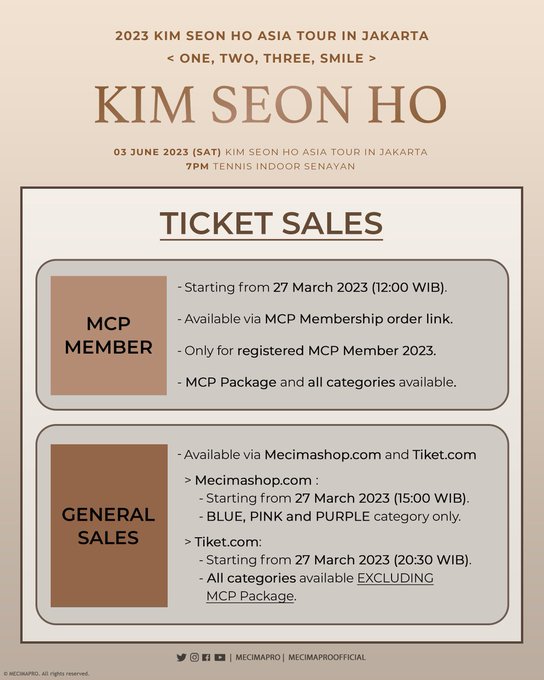 "2023 KIM SEON HO ASIA TOUR <ONE, TWO, THREE, SMILE> in JAKARTA - Official Seat Plan. #KimSeonHo fans, rincian #KimSeonHoInJKT #OneTwoThreeSmileinJKT telah diperbarui! Kami tidak sabar untuk bertemu kalian di bulan Juni, let's get excited!" tulis Mecimapro lewat postingan yang dikutip pada Jumat, 24 Maret 2023.