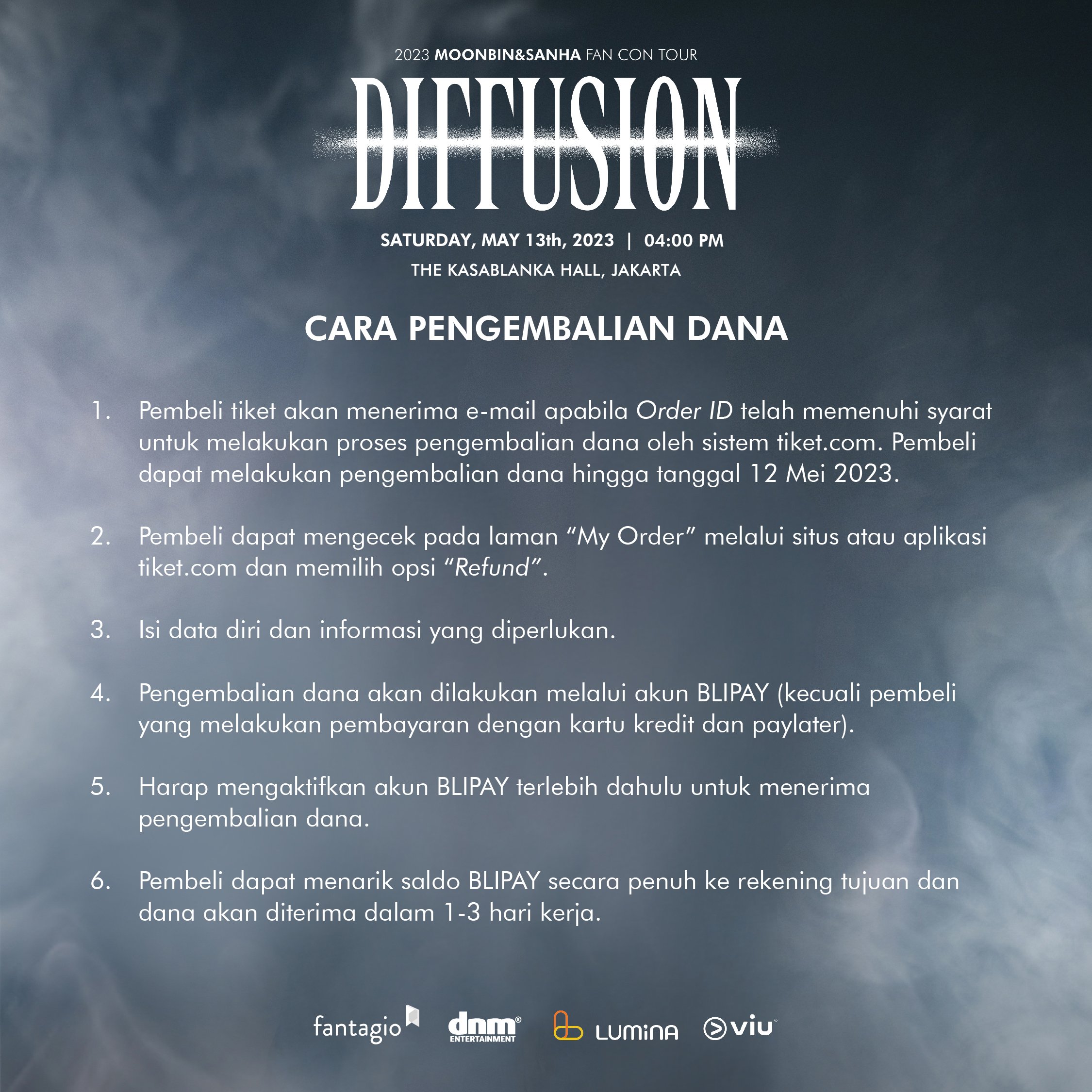 "Kepada para penggemar yang telah membeli tiket, proses pengembalian dana akan dilakukan melalui sistem di Tiket.com," tuturnya.