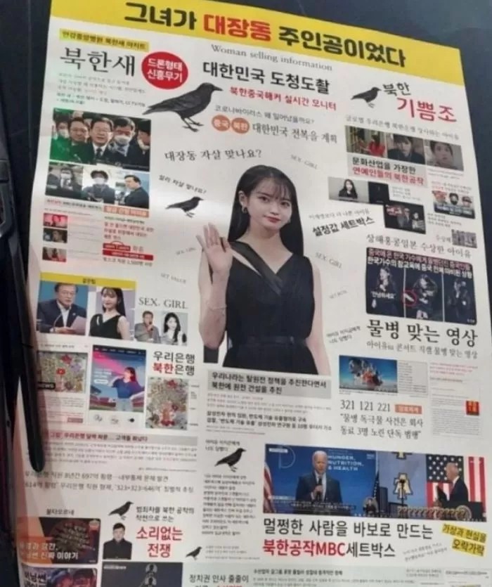 Seperti "IU mata-mata kelas satu Korea Utara", "Korea Selatan akan mati jika kalian tidak mendengarkan IU, seorang selebriti di industri budaya Korea Utara".