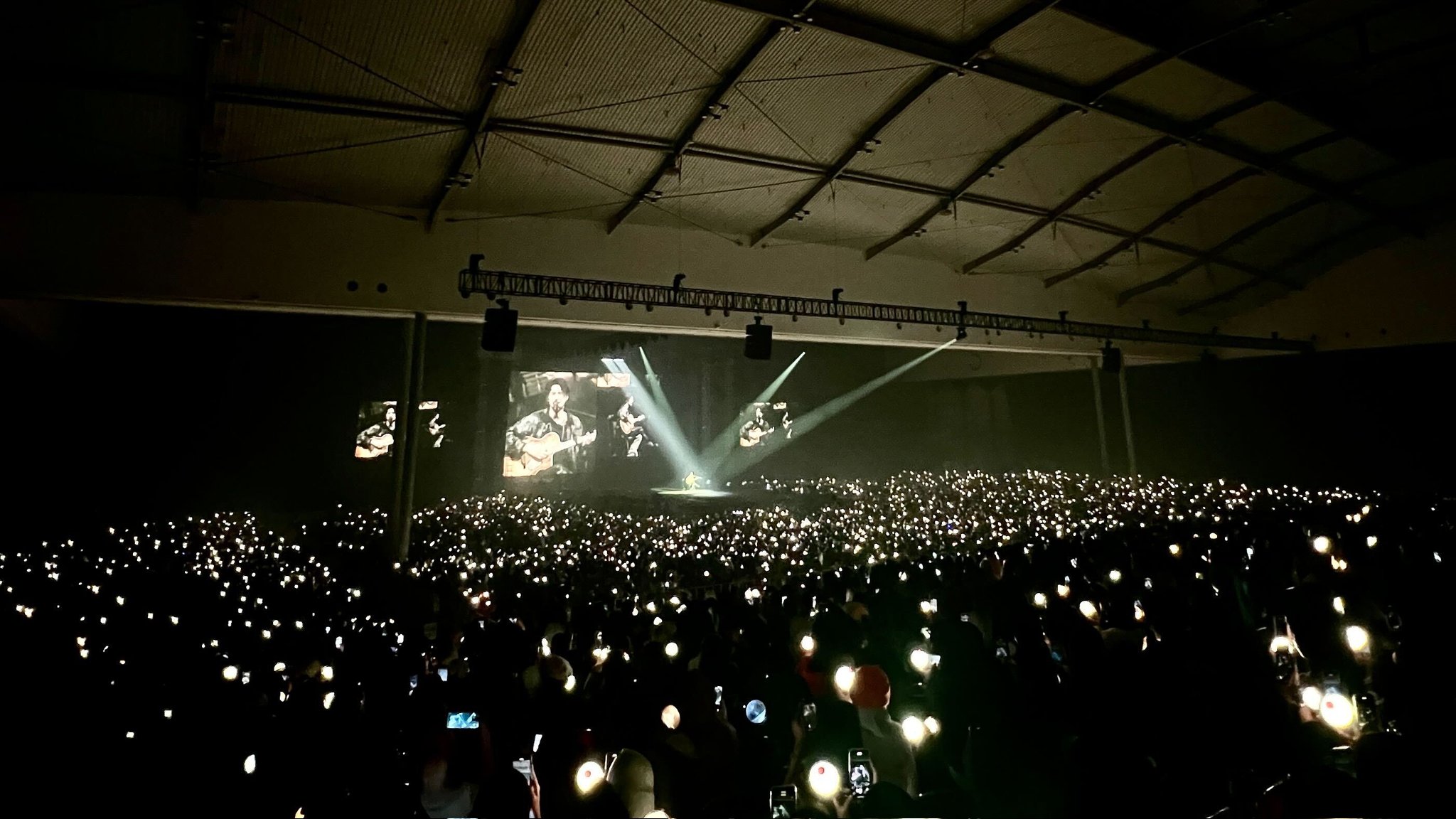 Sambil berjalan ke sebelah kanan dan kiri panggung, Suga memperhatikan para penggemar yang hampir semuanya memakai pakaian berwarna hitam.