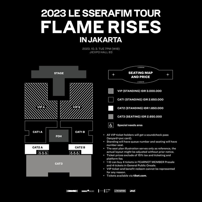Konser LE SSERAFIM berjudul LE SSERAFIM TOUR ‘FLAME RISES’ IN JAKARTA pada 3 Oktober 2023 pukul 19.00 WIB di Jiexpo Hall B3, Jakarta.
