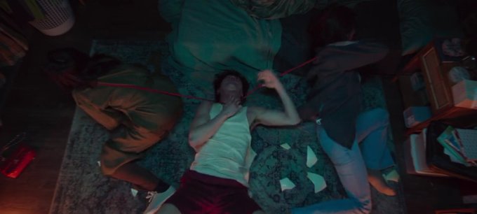 Kyung-Ja meracuni makanan untuk Mi-mo dan mengikatnya di kursi saat dia tidak sadarkan diri.