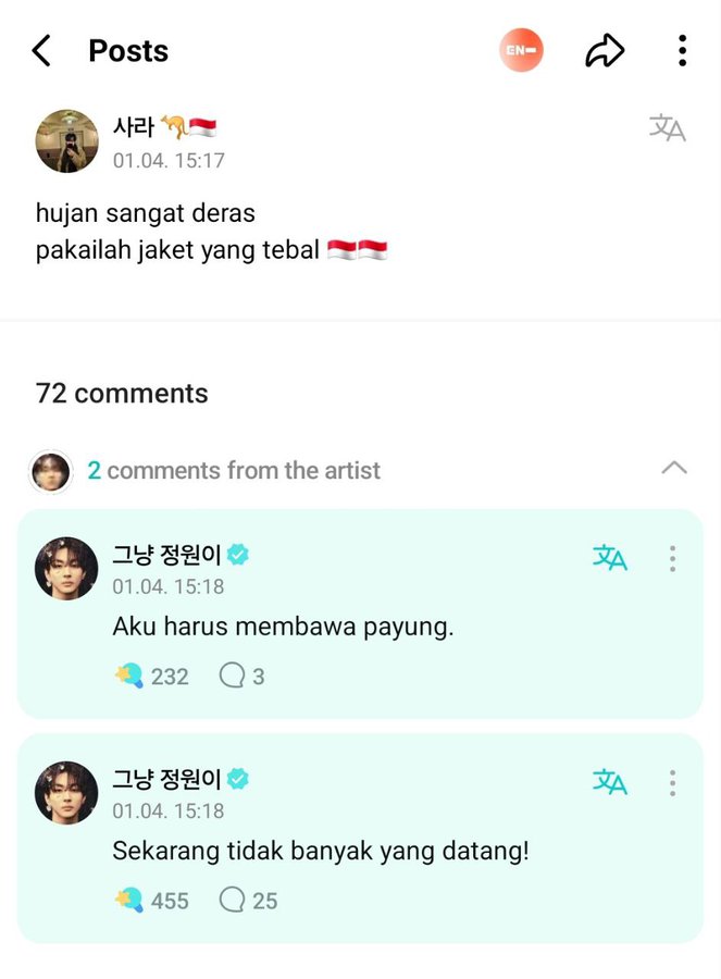 Di luar dugaan, Jungwon menanggapi peringatan itu dengan bahasa Indonesia!