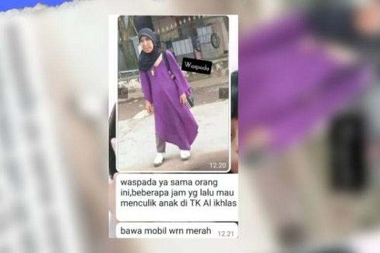"Waspada ya sama orang ini, beberapa jam yg lalu mau menculik anak di TK Al Ikhlas," tulis pesan tersebut.