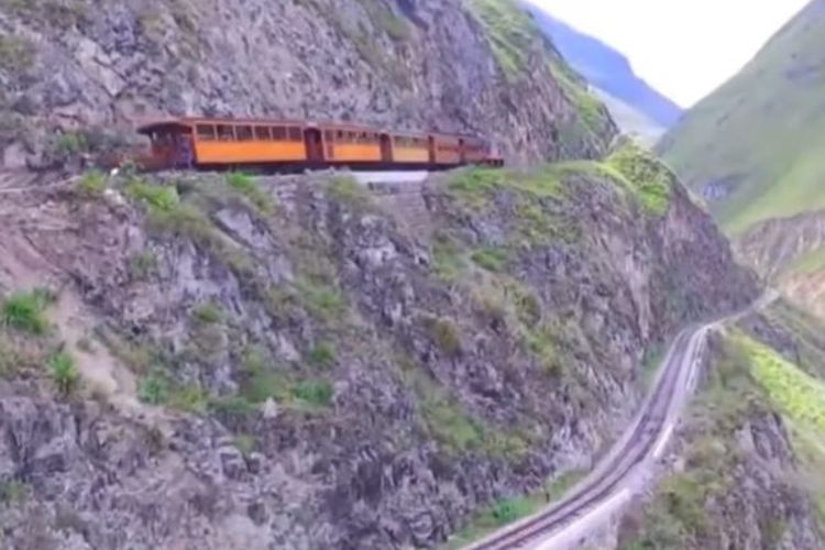 Terletak di pegunungan Andes, Ekuador tepatnya di lembah Alausi. Jalur kereta api ini terkenal ekstrem dan menegangkan. Sebab memiliki kemiringan mencapai 83 persen.