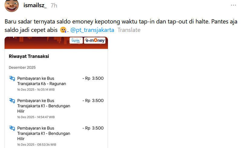 Ismail, penumpang yang bersangkutan, awalnya tidak menyadari adanya kejanggalan. Ia baru curiga ketika saldo uang elektroniknya cepat berkurang meski intensitas perjalanan relatif sama seperti biasanya.