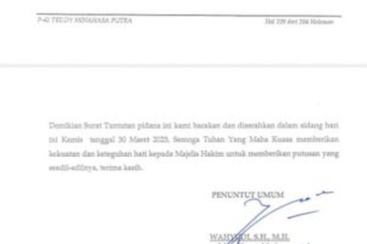 Sementara itu, beredar surat tuntutan jaksa penuntut umum dengan hukuman mati bertuliskan tulisan tangan. Beragam spekulasi muncul. Tak hanya itu, unsur pasal dalam surat tuntutan tersebut pun ada yang dicoret dengan menggunakan pulpen.