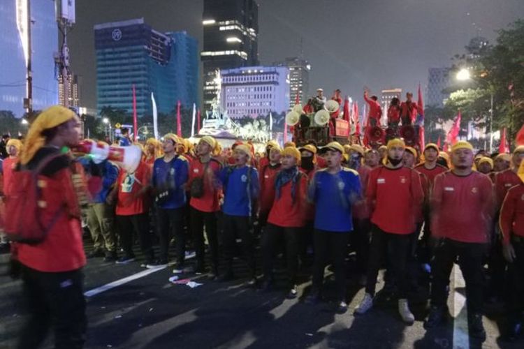 Massa buruh yang masih bertahan hingga malam ini adalah KASBI, SPN, SBSI 92, ARM, KSBI, Gaspermindo dan FSPRI.