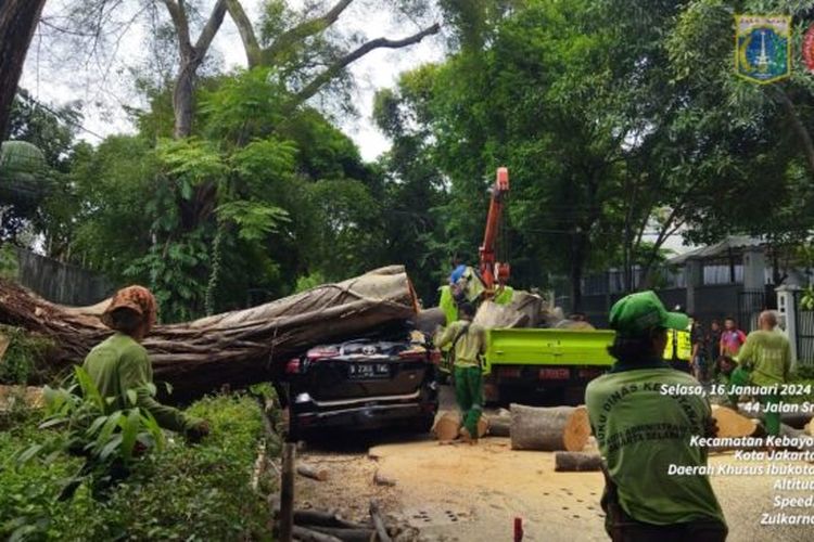 KONTEKS.CO.ID - Pohon besar di depan rumah Prabowo Subianto, Jalan Kertanegara IV, Jakarta Selatan mendadak tumbang, Selasa 16 Januari 2024.
