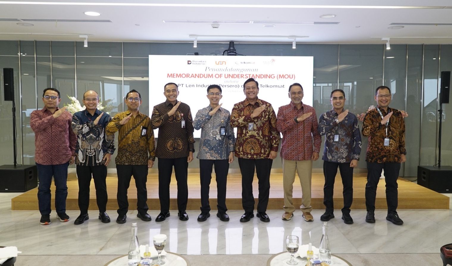 Penandatanganan ini dilakukan oleh Direktur Utama Telkomsat Lukman Hakim Abd Rauf dan Direktur Utama PT Len Industri (Persero) Prof. Joga Dharma Setiawan, Ph.D.