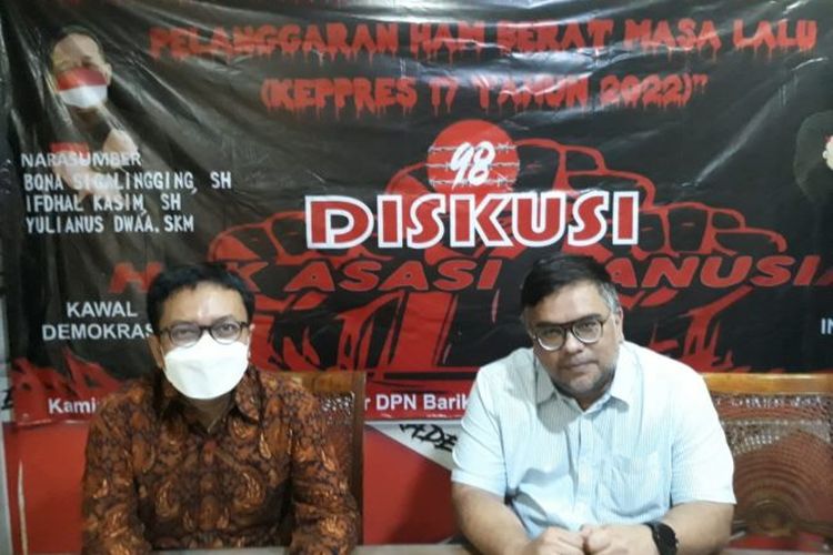 "Ironisnya Keppres no 17/2022 ini tidak menimbulkan kepastian hukum karena tidak menyinggung penyelesaian hukum. Malah rentan dalam penanganan kejahatan berat HAM masa lalu," ungkap Bona Sigalingging pemerhati HAM dan juga aktivis ‘98, dalam FGD "Menyikapi Kinerja Tim Penyelesaian Non Yudisial Pelanggaran HAM Berat Masa Lalu (Keppres nomor 17/2022)”.