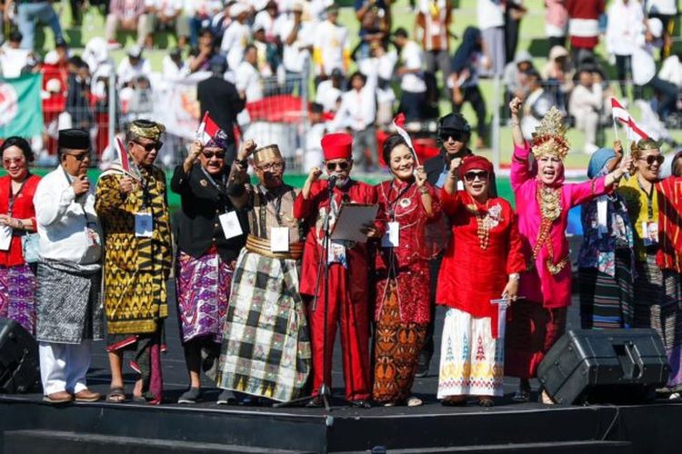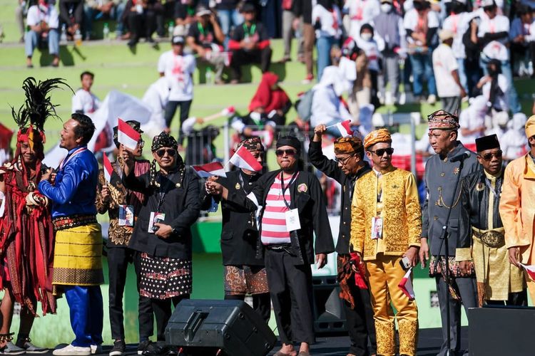 KONTEKS.CO.ID - Dinasti Nusantara yang merupakan perkumpulan para petinggi adat melakukan deklarasi dukungan terhadap calon presiden Ganjar Pranowo di Stadion Gelora Delta, Kabupaten Sidoarjo, Jawa Timur, Sabtu, 10 Juni 2023.