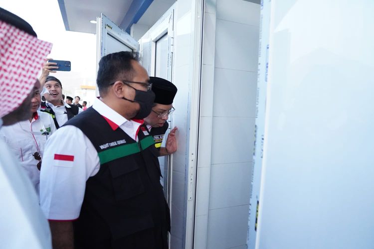 Menteri Agama Yaqut Cholil Qoumas mengecek toilet untuk jemaah haji di Arafah. (Dok: MCH 2023)