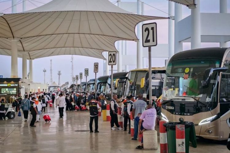 Persiapan jemaah haji yang akan diterbangkan ke Tanah Air dari Bandara Internasional King Abdul Aziz, Jeddah.