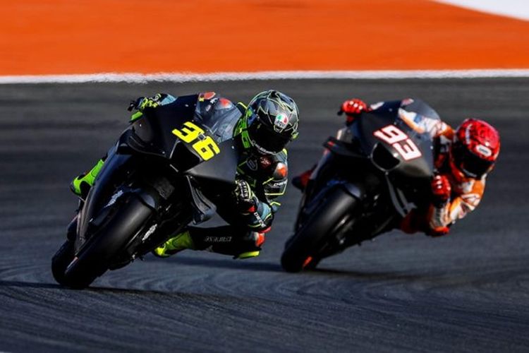 Joan Mir -nomor 36- bersama Marc Marquez di tes akhir musim MotoGP 2022 di Sirkuit Ricardo Tormo Valencia. (Foto: box repsol)